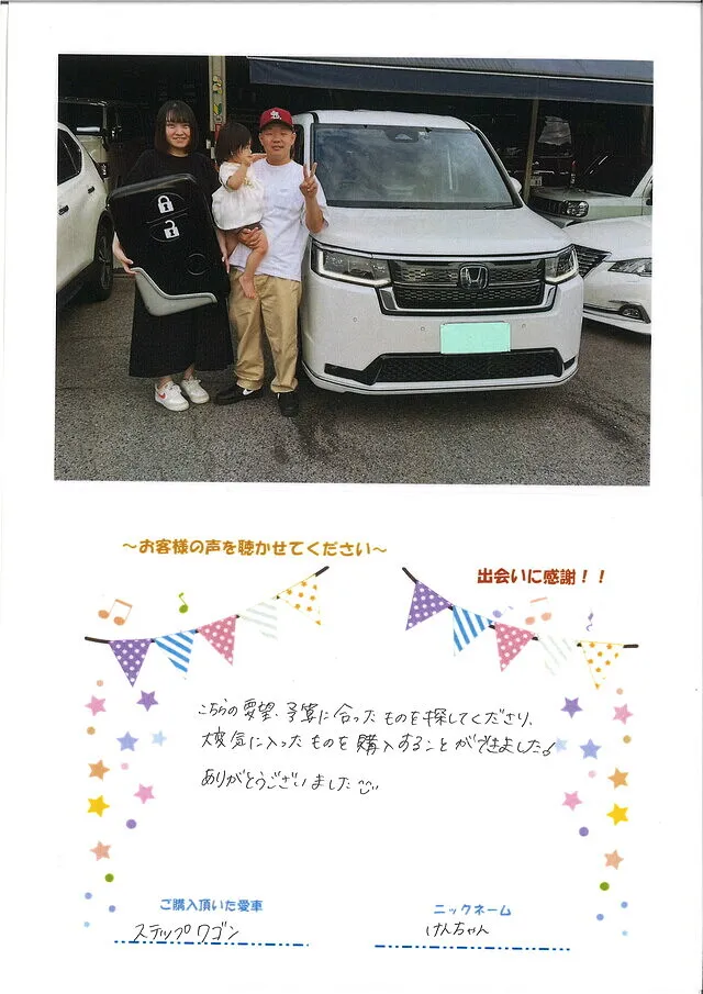 ステップワゴンのご購入、ありがとうございました。