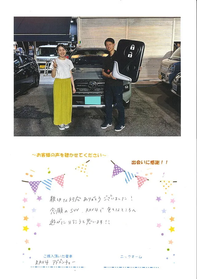 トヨタRAV4のご購入ありがとうございました。