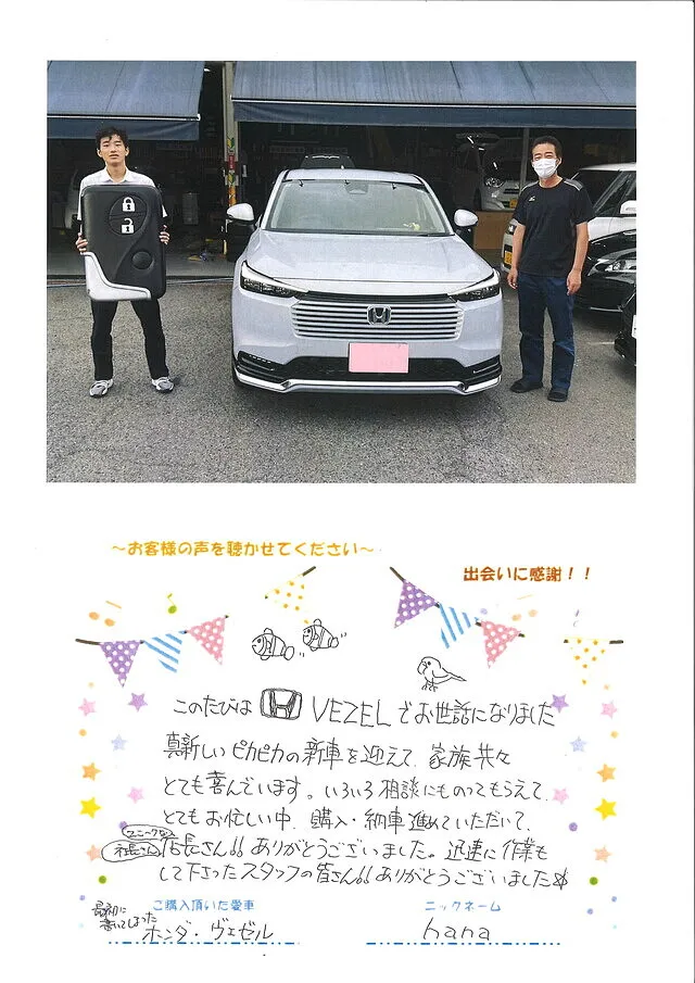 新車VEZELのご購入 ありがとうございまいした。