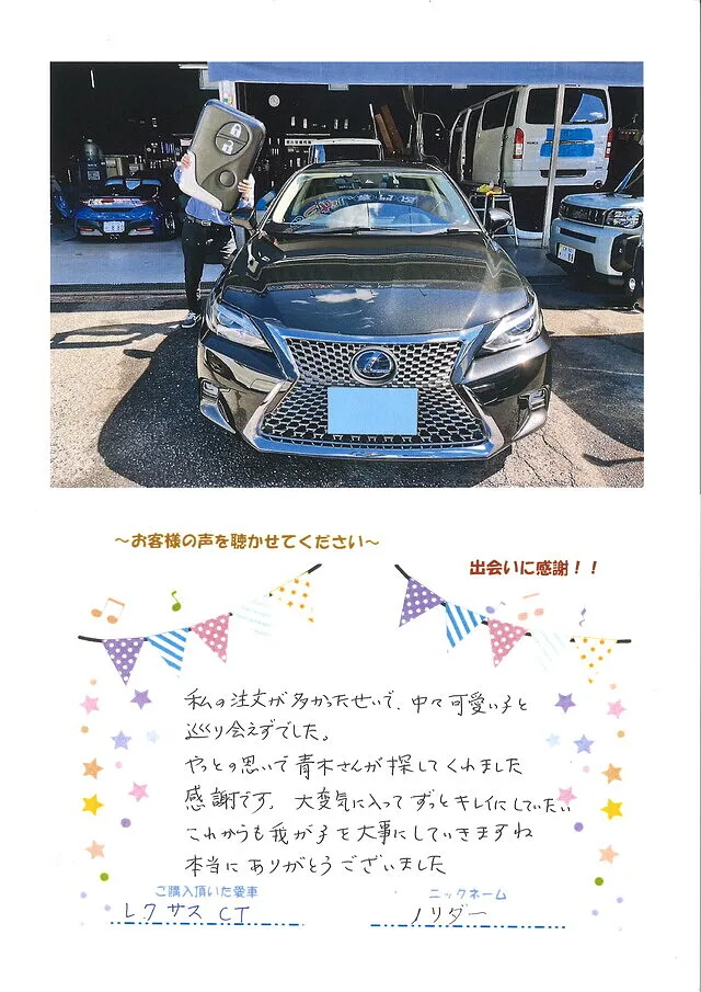 レクサスCTのご購入ありがとうございます