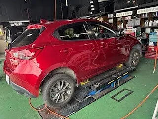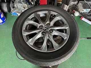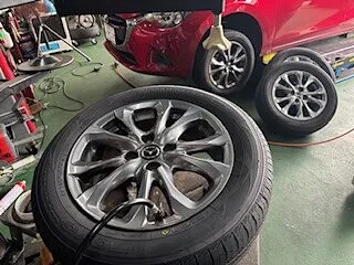本日は、広島市中区からお越しいただいたDJLFS型デミオのタイヤ組み換え作業をしていきます。